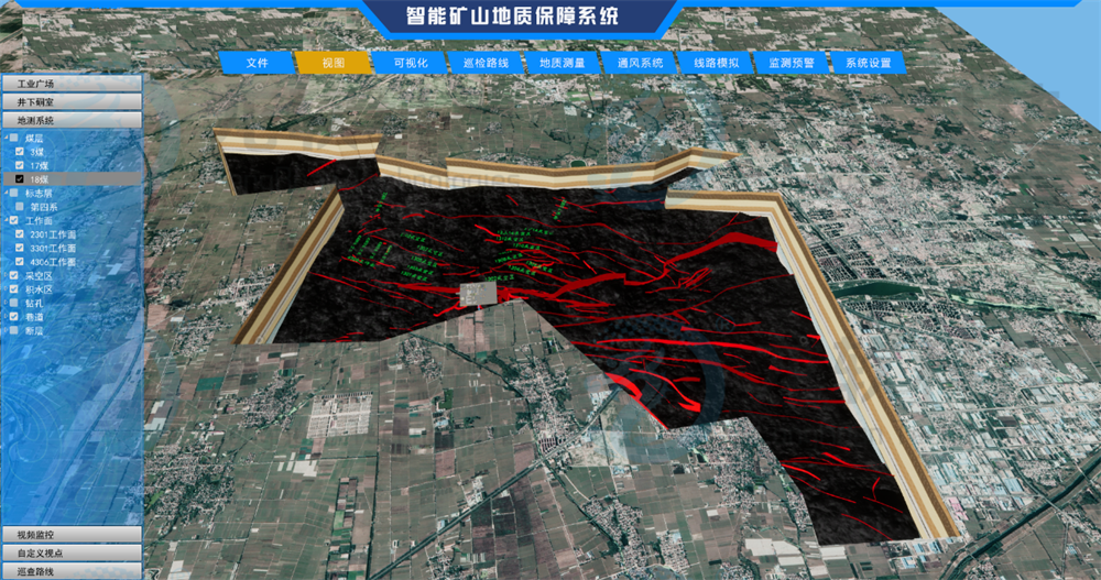 系統按照《煤礦防治水細則》、《煤礦地質工作規定》和《煤礦安全生產標準化管理體系基本要求及評分方法》等對煤礦地測防治水信息化的相關規定,以及國家發展改革委等八部委聯合下發的《關于加快煤礦智能化發展的指導意見》、中國煤炭學會標準《智能化煤礦(井工)分類、分級技術條件與評價》(T/CCS 01- 2020)對智能地質保障的要求,為安全生產、地質災害預警、智能開采、智能掘進、智能管控等提供高精度三維地質模型和業務數據的集成與應用服務為目標,采用云計算、協同TGIS、虛擬現實、移動互聯網、大數據分析等先進技術,基于一張圖管理理念,開展高精度地質探測、物探數據再解釋、多源地質數據融合等,建立地質信息數據庫,形成煤礦專業地理信息系統平臺、地質一張圖Web協同平臺、高精度透明地質保障平臺、地質大數據分析與隱蔽致災預警報警分析和預警平臺,形成面向云計算和大數據的智能礦山透明地質保障系統。