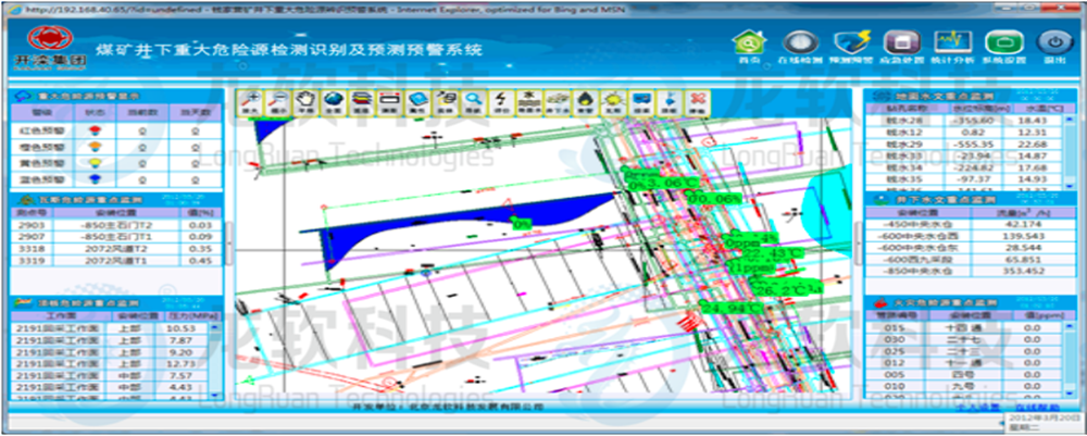 基于煤礦水、火、瓦斯和頂板等安全監(jiān)控系統(tǒng),實(shí)現(xiàn)重大危險(xiǎn)源在線檢測(cè),實(shí)時(shí)采集重大危險(xiǎn)源數(shù)據(jù),建立重大危險(xiǎn)源指標(biāo)體系庫(kù),運(yùn)用先進(jìn)的預(yù)警模型,實(shí)現(xiàn)對(duì)煤礦井下水、火、瓦斯和頂板等重大危險(xiǎn)源的集成管理和超前預(yù)警。提高煤礦重大危險(xiǎn)源預(yù)警能力,降低重大危險(xiǎn)源事故發(fā)生率,進(jìn)而提高煤礦整體安全管理水平。